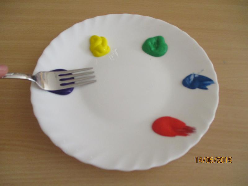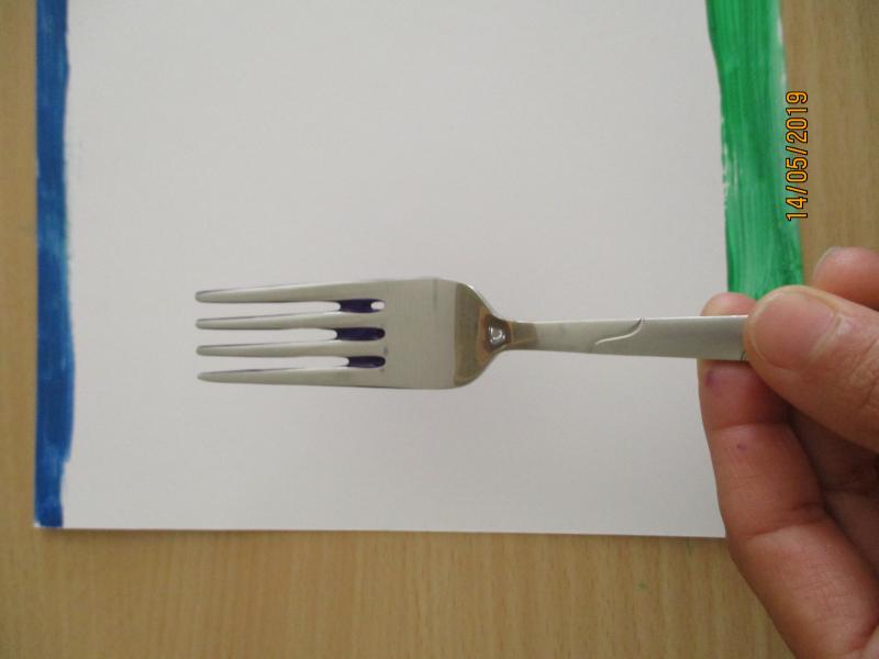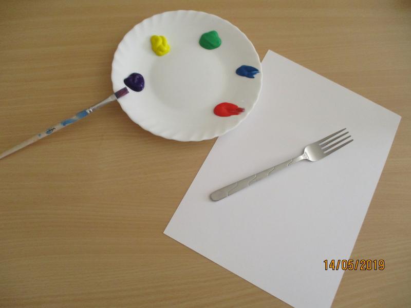 Der GabeldruckHallo liebe Kinder, Hallo liebe Eltern, heute möchte ich mit Euch etwas Kreatives machen und dazu braucht Ihr eine Gabel. Jetzt fragt Ihr Euch wahrscheinlich: Was kann man denn Kreatives mit einer Gabel machen? Die ist doch zum Essen da. Ich verrate es Euch: man kann mit etwas Farbe und einer Gabel einen sogenannten „Gabeldruck“ machen. Folgende Dinge braucht Ihr dafür: