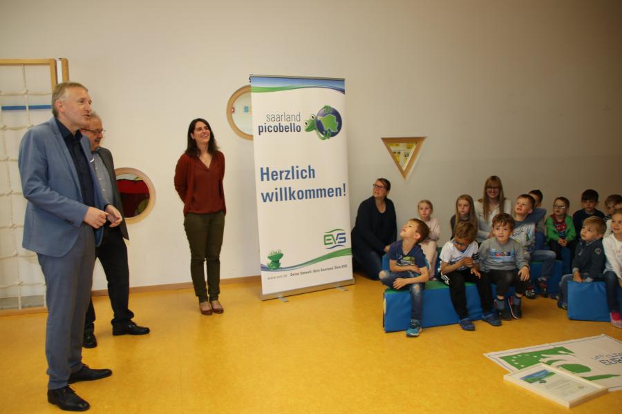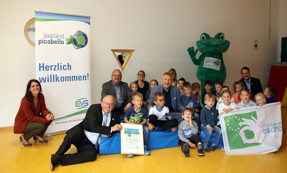 Die Kleinsten mit dabei beim Piccobello TeilnehmerrekordAuch in 2017 waren die Kindergartenkinder von Kinderland im Campus I und II wieder bei der Picobello Aktion des EVS dabei. Als die jüngsten im Feld wurden sie in diesem Jahr ganz besonders vom Landkreis geehrt. Landrat Patrik Lauer, EVS-Geschäftsführer Micheal Philippi, Bürgermeister Manfred Schwinn (Saarwellingen) und Markus Tauchert vom Sponsor Kaufland Dillingen waren extra da, um sich persönlich bei unseren Kindern für das fleißige Müllsammeln zu bedanken und eine besondere Urkunde hatte das tolle Maskottchen auch noch dabei. Das Highlight für die Kinder stellte aber dann das Kaufland-Umweltmobil dar. Wir danke Albrecht und Heike Trenz unter anderem für die umfangreiche Einfürhung ins Unterholz unsere Wälder...und wie der Fuchs dem Hase Gute Nacht sagt, wissen die Kinder jetzt auch! Daten & Fakten