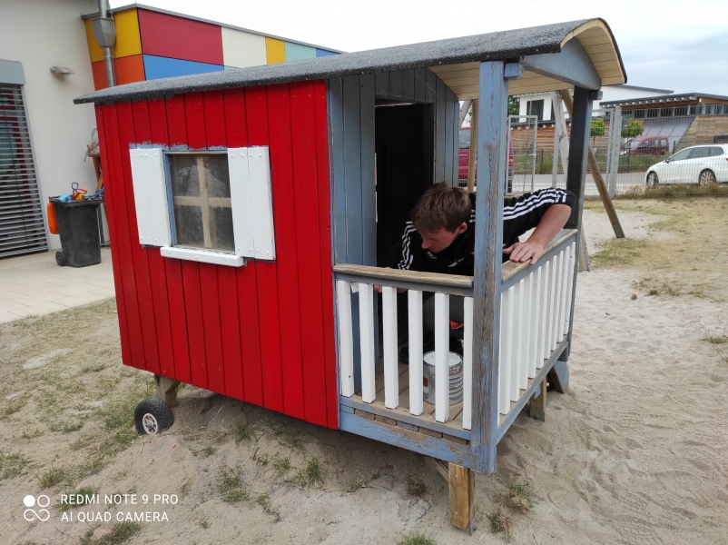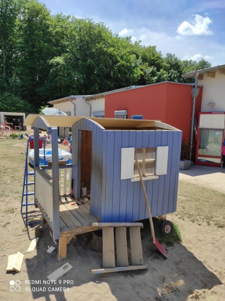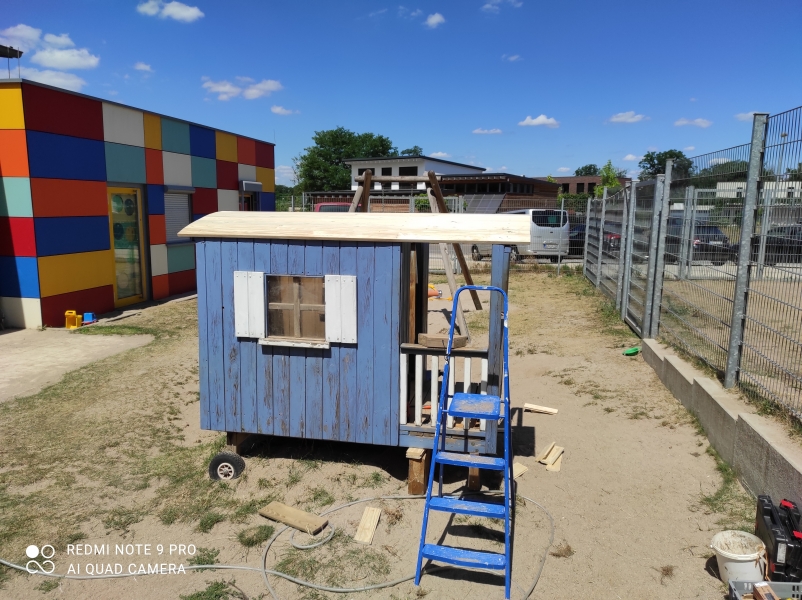 …ein Bauwagen restauriert (neues Dach und neue Farbe und ein fester Stand)