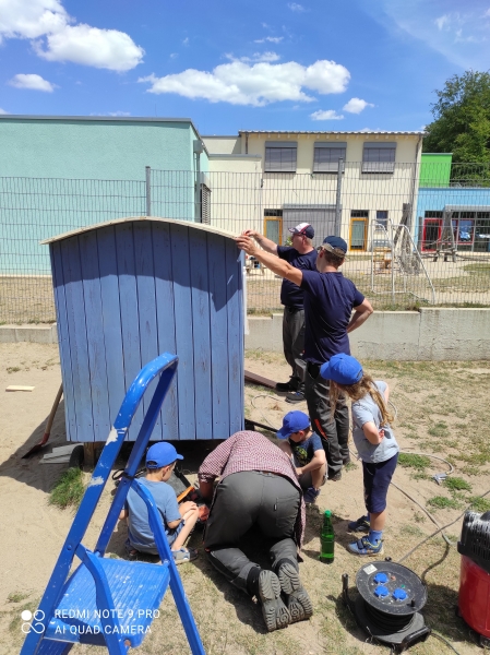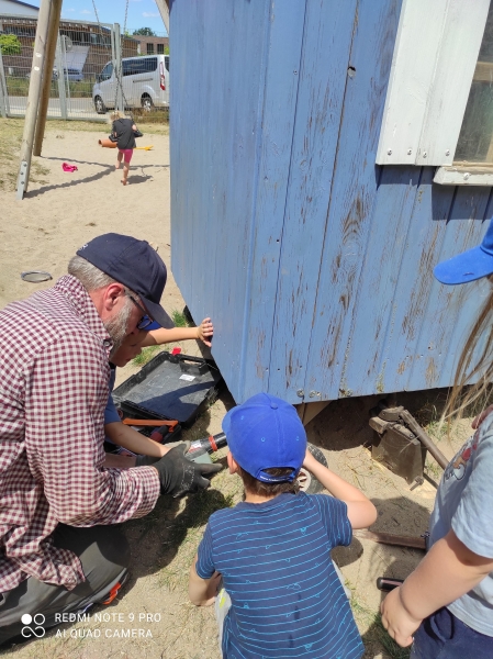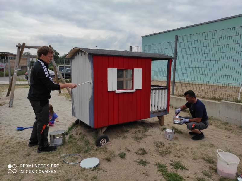 Vor allem die Kinder vom Campus II hatten viel Gelegenheit die Arbeiten der Fordmitarbeiter mit viel Spaß und Spannung zu unterstützen und zu beobachten. Zwei der Kinder waren ganz stolz darauf, dass ihr Papa die Kita schöner gemacht hat.