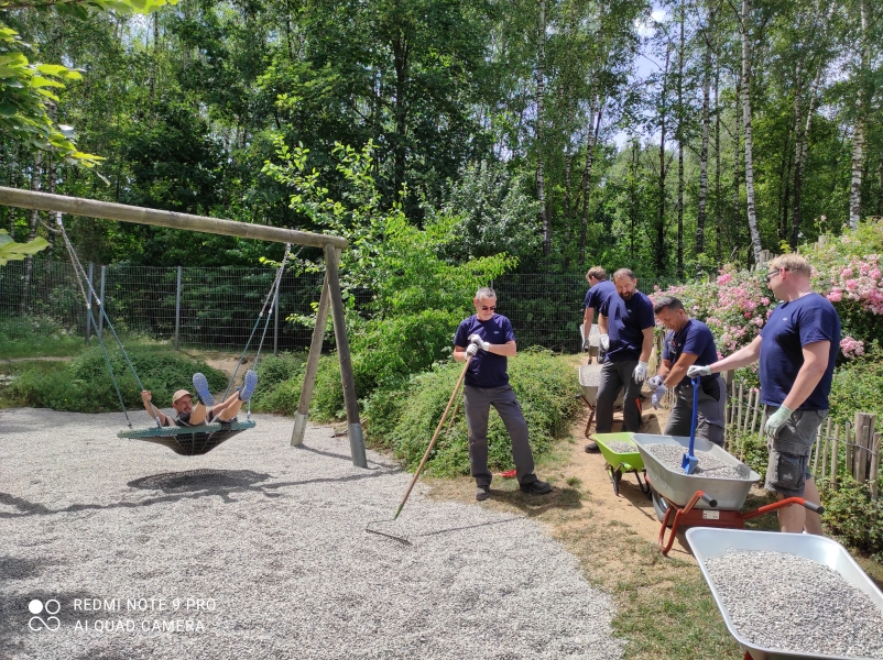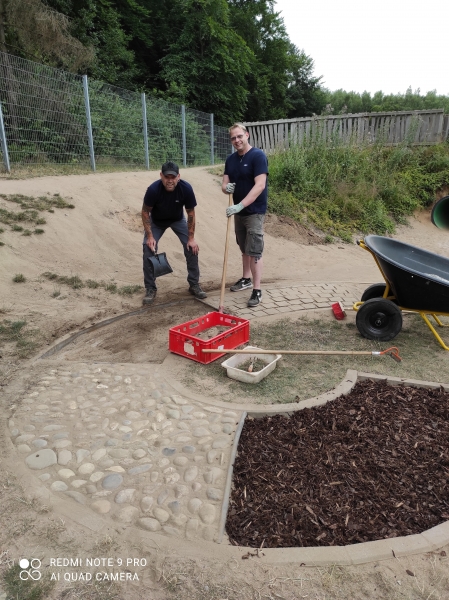 - die Firma Gebr. Arweiler, die 12 m³ Rindenmulch und insgesamt 27 t Sand und Kies gespendet hat