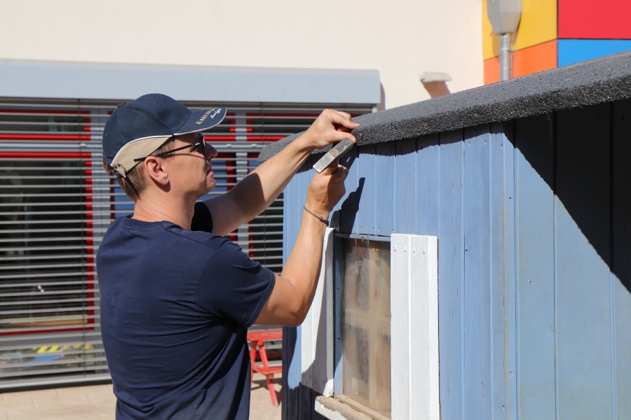 - Michael Müller und Cengiz Bektas, die eine „Mülltrennungsanlage“ für die Kinder im Kindergarten vom Kinderland im Campus II gebaut und gespendet haben.