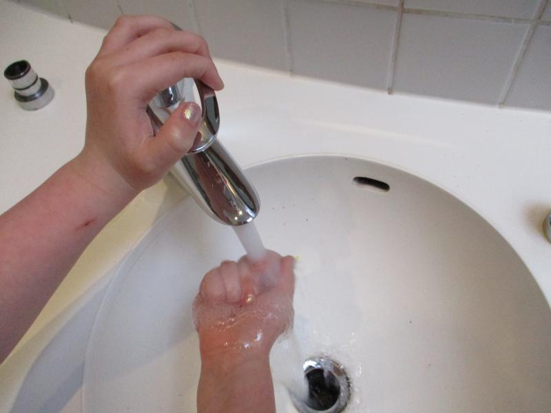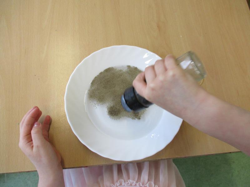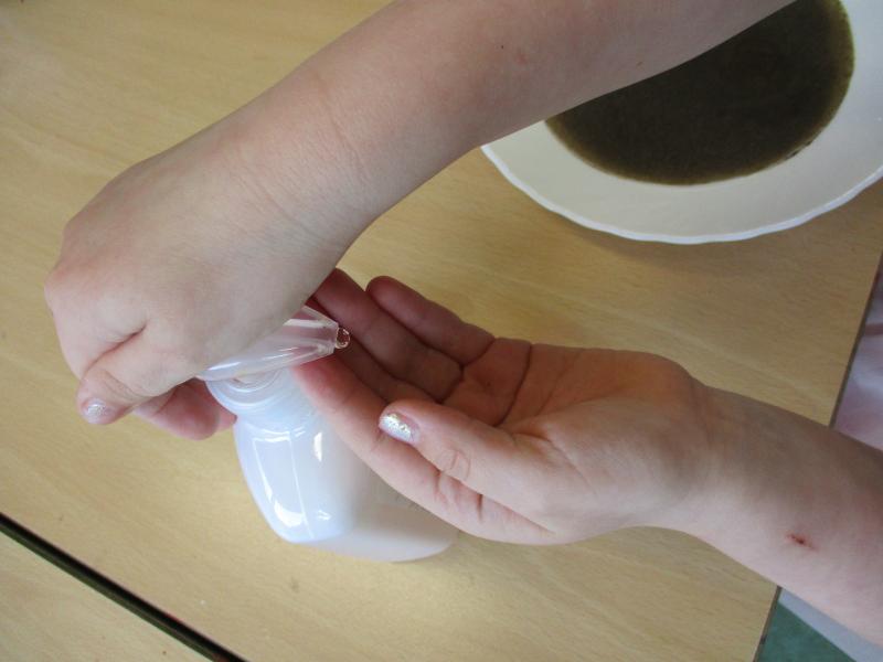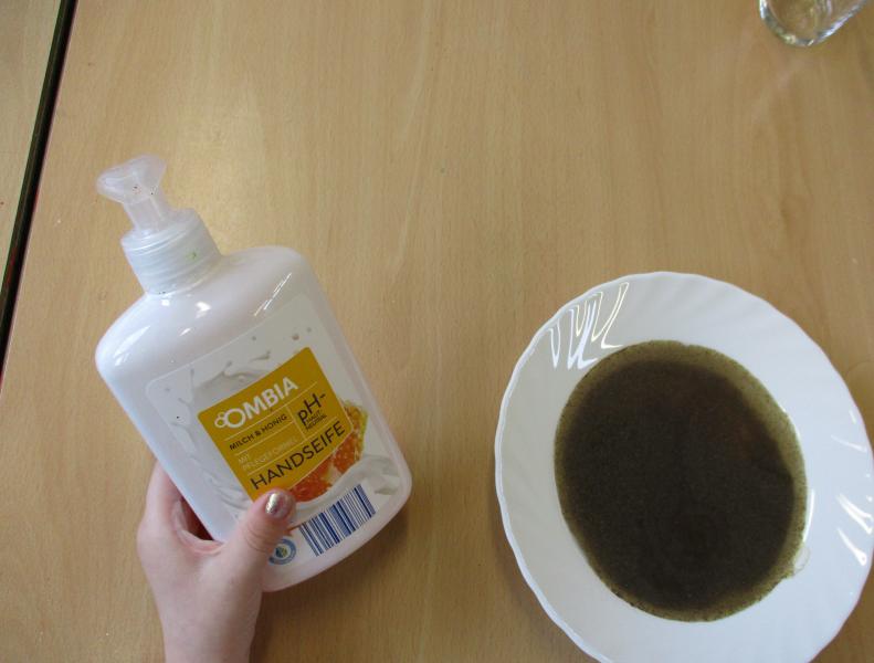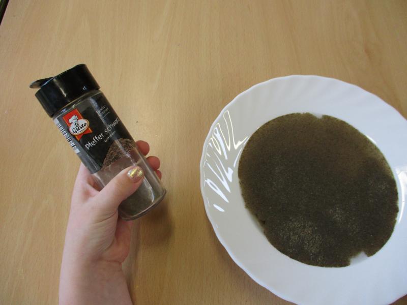 Zuerst gießt Du etwas Wasser auf den Teller. Dann streust Du etwas Pfeffer auf die Wasseroberfläche. Jetzt stell Dir vor, der Pfeffer stellt die Viren dar, die auf den Händen haften. Wenn Du Deine Hände nur mit Wasser wäschst, werden sie nicht richtig sauber. Tauch Deine Hände in das Pfefferwasser. Was siehst Du? Die Viren befinden sich alle auf Deinem Finger. Wasch Deine Finger einfach mit klarem Wasser zuerst ohne Seife ab. Was passiert? Im nächsten Schritt verteilst Du etwas Seife auf Deinen Fingern und legst sie erneut in das Pfefferwasser. Schau mal! Siehst Du das? Mit der Seife entfernst Du die Viren und der ganze Schmutz ist wie weggeblasen. Deine Hände sind jetzt sauber und virenfrei! Wir hoffen, dass Euch unsere kleine Anregung gefallen hat und dass Ihr auch für weitere Experimente auf unserer Internetseite vorbeischaut. Bei Fragen, Wünschen oder weiteren Ideen stehen wir Euch gerne zur Verfügung.