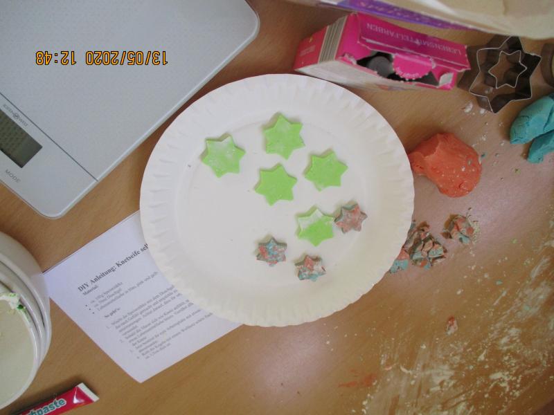 Wir stellen Knetseife her…...und das benötigt Ihr: So geht’s: 2. Sobald die Masse sich wie Knete anfühlt, teilt Ihr sie auf und gebt jeweils etwas Lebensmittelfarbe hinzu. Verrührt alles gut miteinander und formt runde Kugeln aus der Knete. 3. Jetzt bestreut Ihr Euren Tisch mit etwas Speisestärke und rollt die Kugeln mit einem Nudelholz schön flach aus (wie beim Plätzchenbacken), bis die Knete ca. 1,5 cm dick ist. 4. Jetzt könnt Ihr Eure Knetseife wie Plätzchen ausstechen und zum Waschen Eurer Hände nutzen. Viel Spaß beim Ausprobieren wünscht Euch das Team aus dem Campus I Daten & Fakten